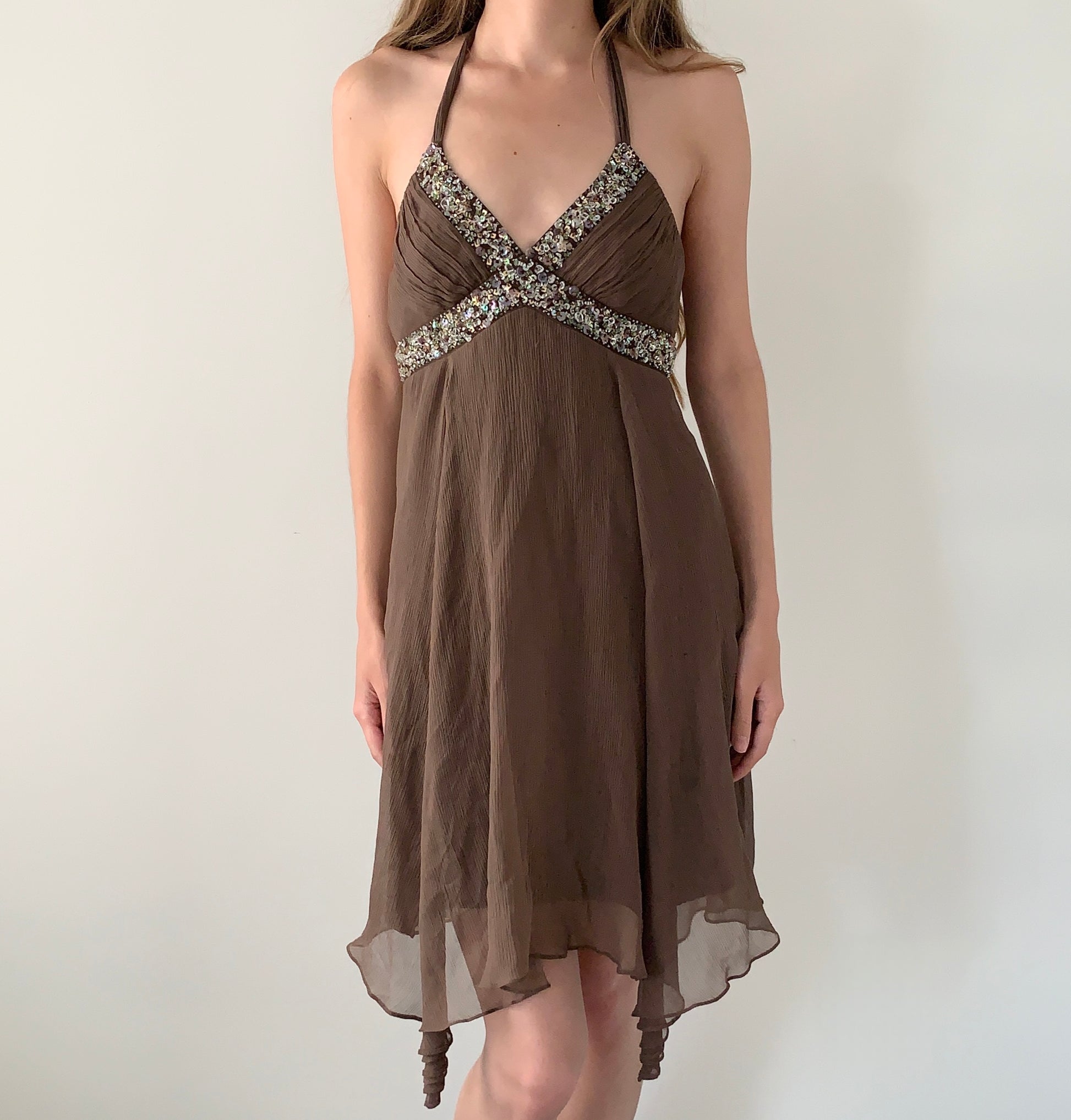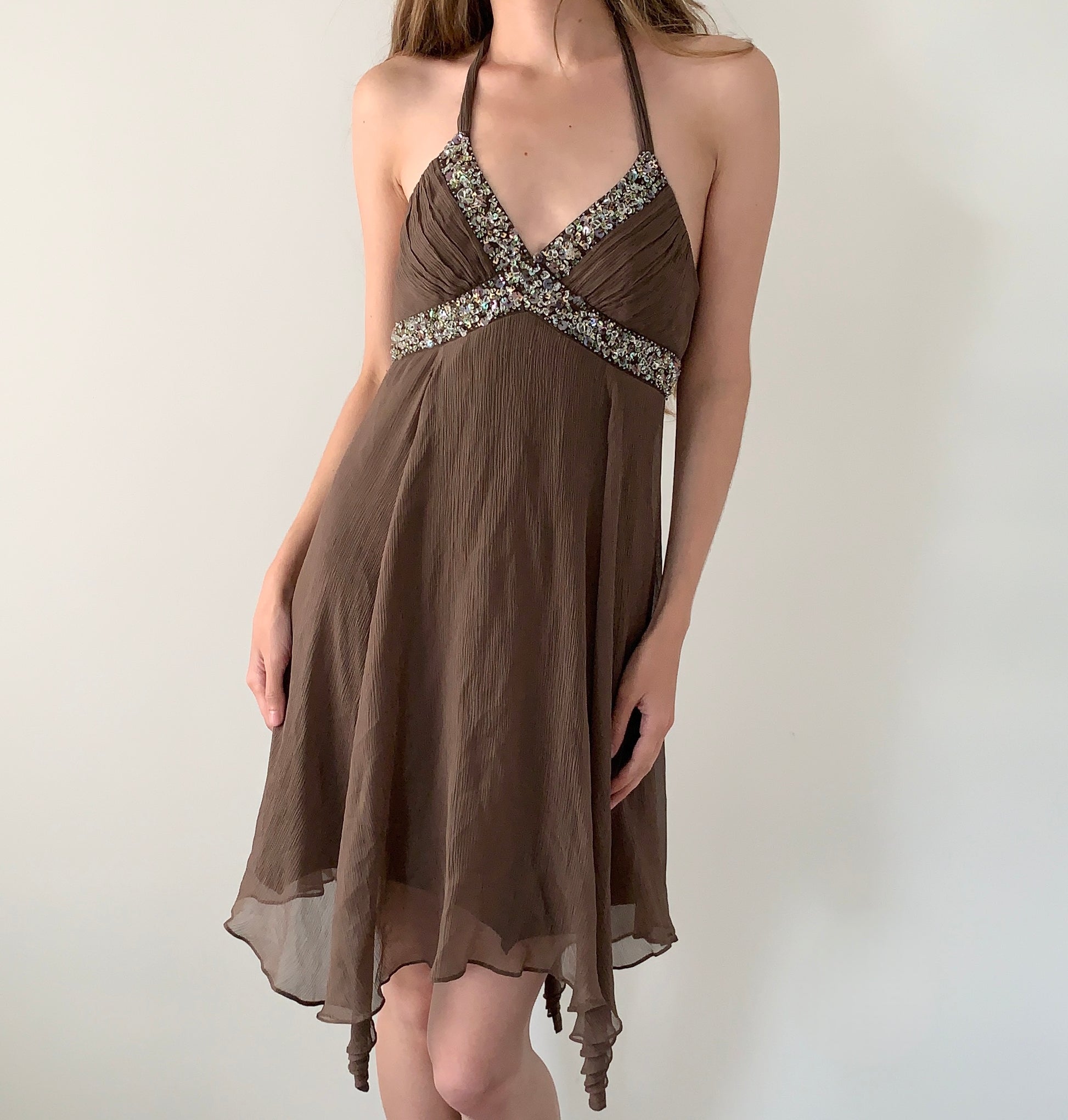 BCBG 100% silk beaded halter dress